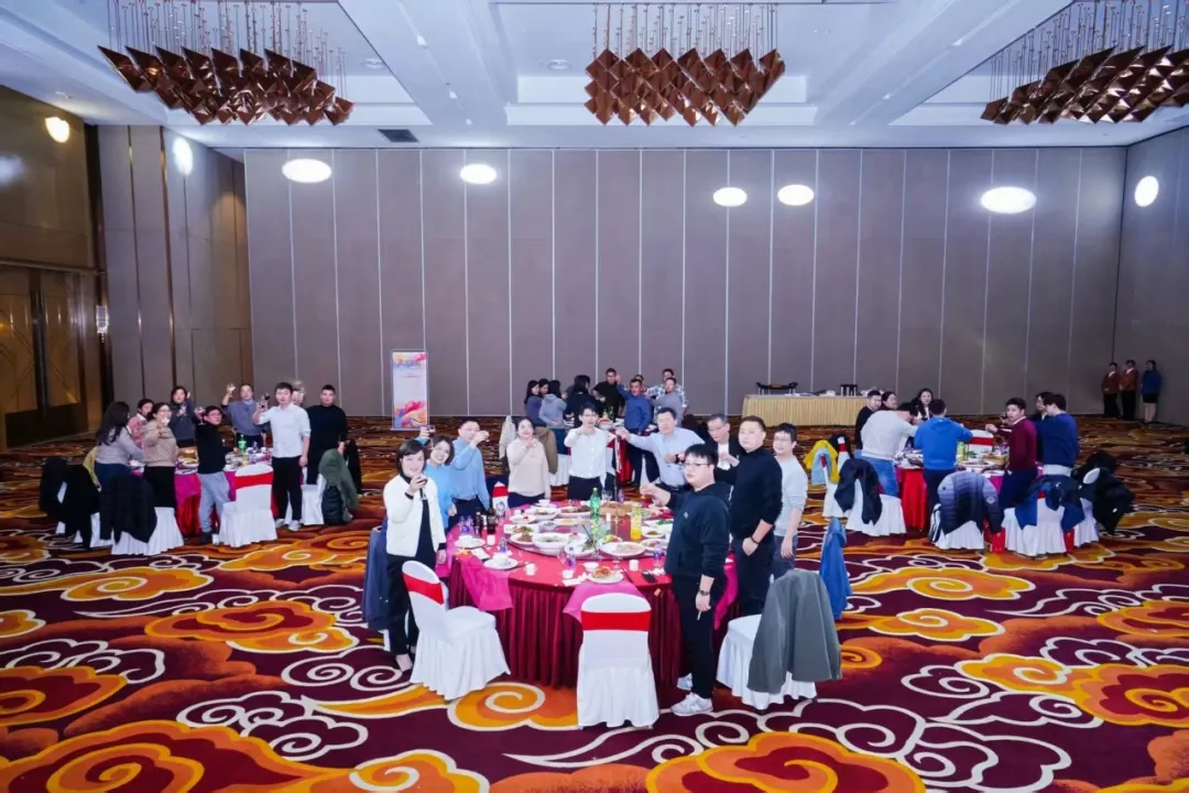 現(xiàn)場(chǎng),精彩紛呈的節(jié)目表演、緊張有趣的互動(dòng)游戲與多輪驚喜抽獎(jiǎng)輪番上演?!斗e木拼搭》、《無(wú)限大長(zhǎng)腿》、《蒙眼踏步》等游戲妙趣橫生,大家在協(xié)作中增進(jìn)默契,歡聲笑語(yǔ)不絕于耳。幸運(yùn)抽獎(jiǎng)環(huán)節(jié)更是驚喜連連,不斷點(diǎn)燃現(xiàn)場(chǎng)的氣氛,彼此的情誼也在觥籌交錯(cuò)間愈發(fā)深厚。